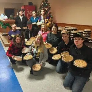 Falls High School students made 144 pies for the Salvation Army’s Thanksgiving dinner this year, and LINDAR provided the containers to transport them safely.